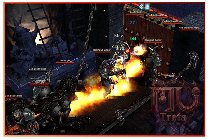 Blood Castle é um evento PvE competitivo onde vários jogadores entram em uma ponte infestada de monstros com um objetivo principal: destruir o portão, eliminar a estátua e entregar a arma do arcanjo ao anjo caído antes que o tempo acabe.